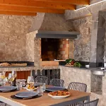 The property offers a fully furnished kitchen, as well as an outdoor dining area and a place for dining to cook and dine. There is also a microwave, an electric kettle, and a refrigerator available in the kitchen.